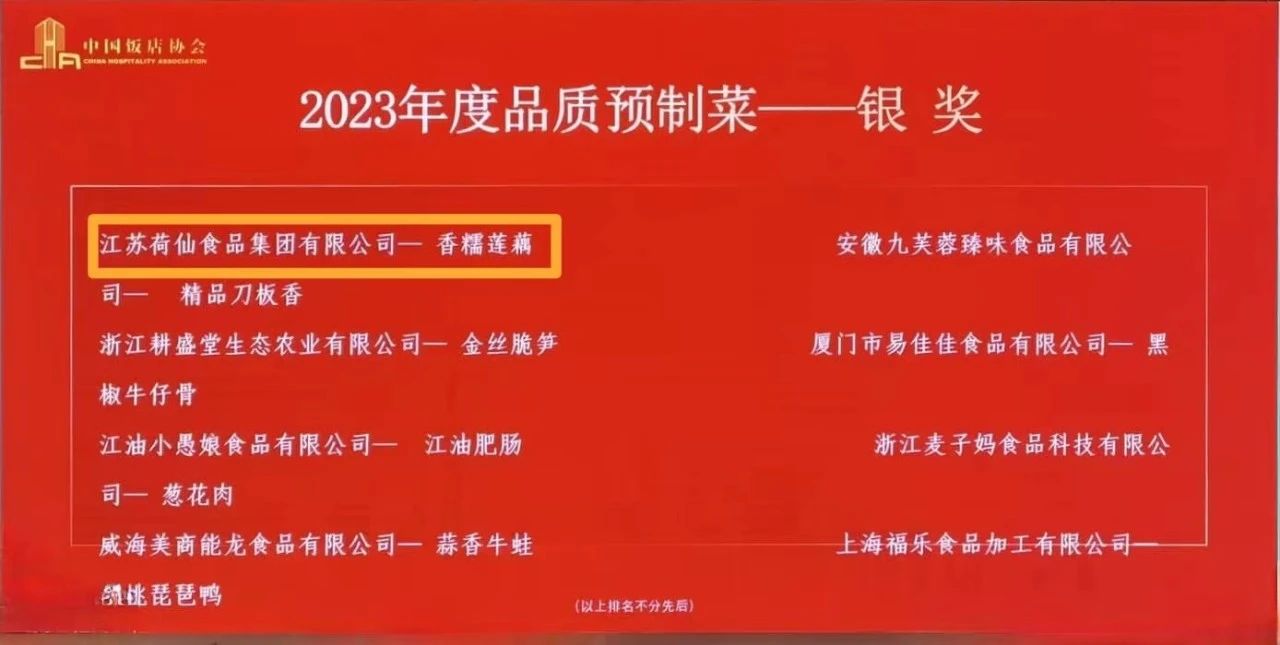 本屆展會同期舉行了由中國飯店協(xié)會和上海餐飲烹飪行業(yè)協(xié)會主辦的“品質(zhì)預制菜中國行·上海站”活動,荷仙的香糯蓮藕憑借優(yōu)秀的產(chǎn)品品質(zhì)、高效的食用方式、創(chuàng)新性的產(chǎn)品工藝和健康好吃的產(chǎn)品口味入選“2023年度品質(zhì)預制菜”!