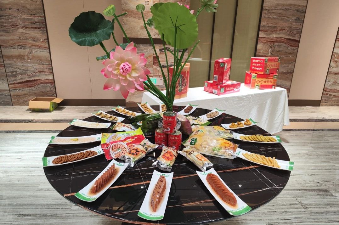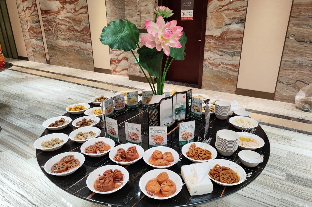 交流之際,荷仙集團(tuán)展出數(shù)十種蓮藕加工美食,產(chǎn)品涵蓋常溫調(diào)理類、冷凍調(diào)理類、水煮類等精品。