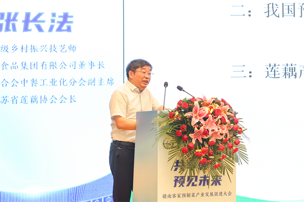 荷仙集團(tuán)董事長張長法結(jié)合工作實(shí)際,以《從蓮藕產(chǎn)業(yè)化看中國預(yù)制菜產(chǎn)業(yè)變遷》為題作了主旨演講,他以蓮藕產(chǎn)業(yè)化發(fā)展的成功經(jīng)驗(yàn)為贛南客家菜產(chǎn)業(yè)發(fā)展提出了建議。
