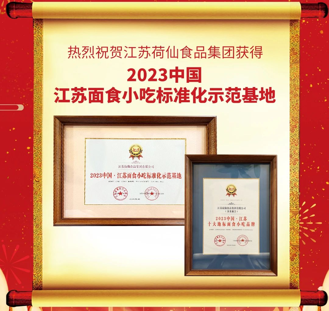 大會(huì)中,荷仙憑借規(guī)?;l(fā)展、標(biāo)準(zhǔn)化加工、規(guī)范化生產(chǎn)、品牌化建設(shè),榮獲“2023中國·江蘇面食小吃標(biāo)準(zhǔn)化示范基地、江蘇十大地標(biāo)面食小吃品牌”!