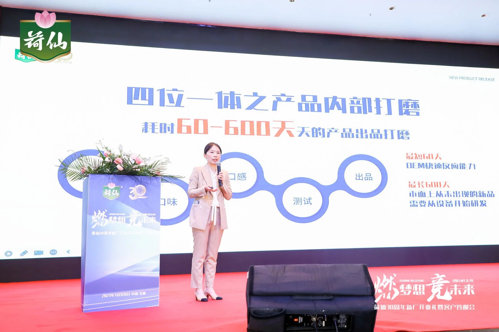 發(fā)布會上荷仙食品有限公司總經(jīng)理張麗敏女士隆重推出了“升級版天禾藕合”、“水晶藕合”、“咸蛋黃芝士藕合”、“紅豆沙藕合”、“藕粉圓”、“珍珠肉丸”、“桂香堅果藕粉”和“美人紅藕湯”八款新品,荷仙緊抓市場需求,滿足年輕人不同偏好,研發(fā)的新品迎合了當(dāng)下的健康消費趨勢。