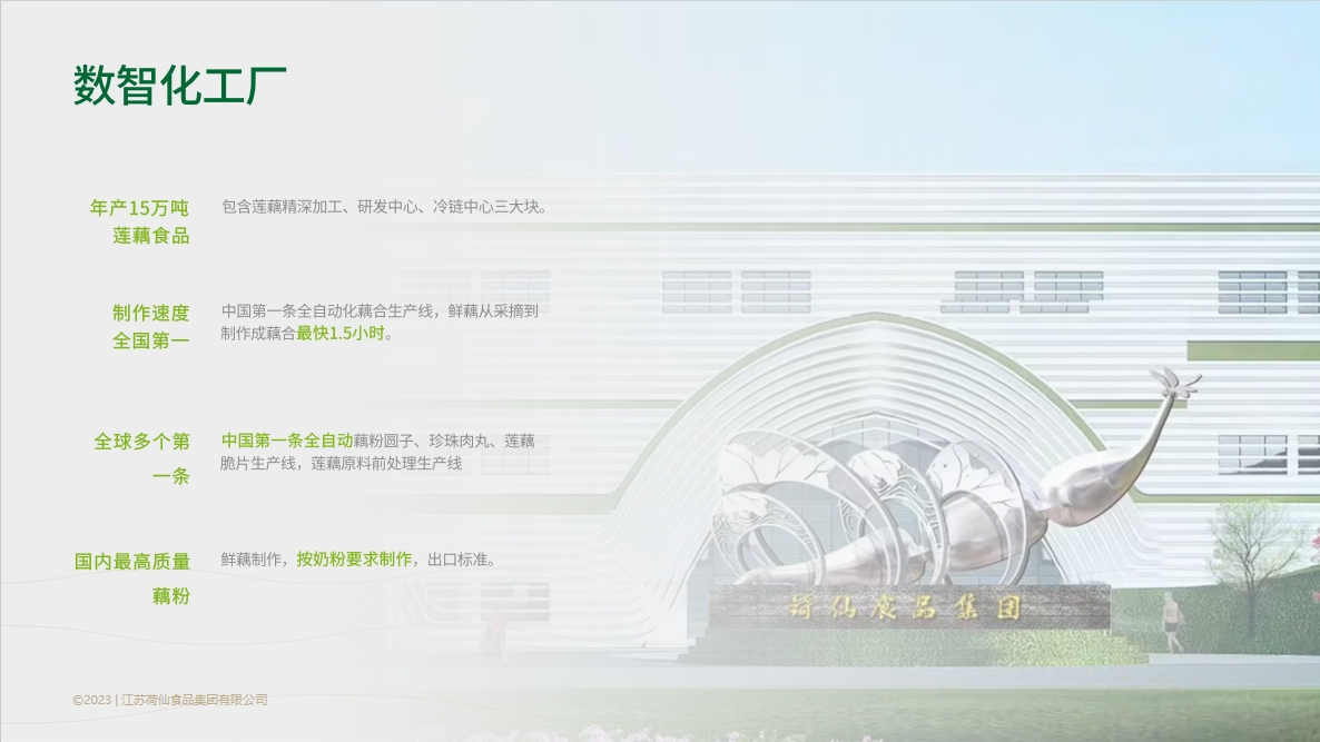 荷仙堅(jiān)持“誠(chéng)則成,新則興”的發(fā)展理念,在新工廠打造了中國(guó)第一條全自動(dòng)化藕粉圓、珍珠肉丸、休閑藕脆片等生產(chǎn)線,并已開始生產(chǎn)。